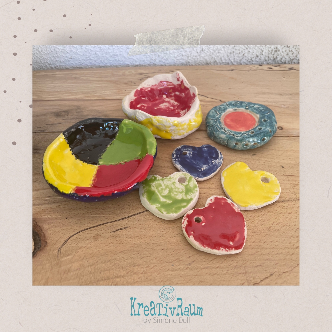 Beim zweiten Termin glasierst du deine Stücke selbst – liebevoll, farbenfroh, nach deinem Gefühl.